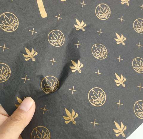 Aangepaste Gouden Logo Zwarte Verpakking Papier Tissue Inpakpapier Voor Producten Verpakking Kleding Wrap Logo Gedrukt